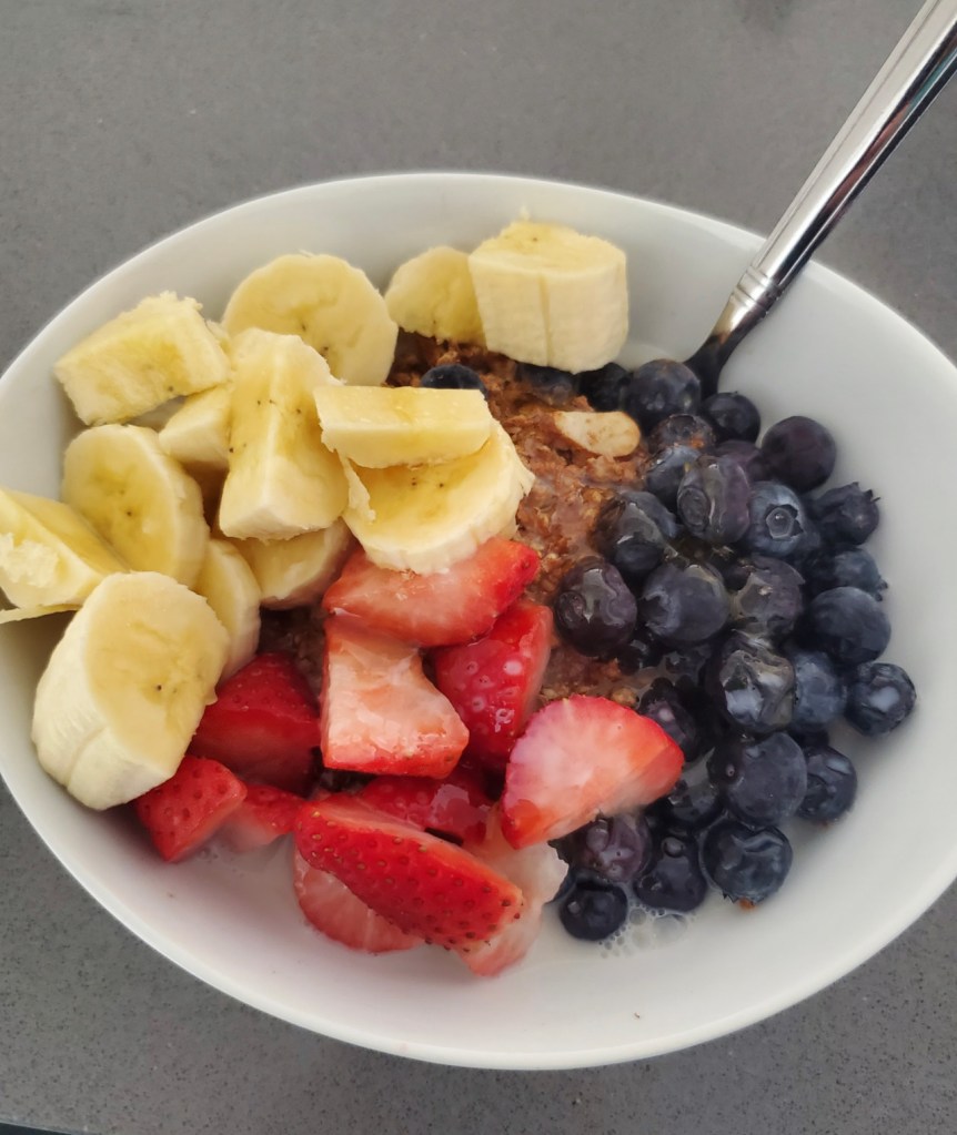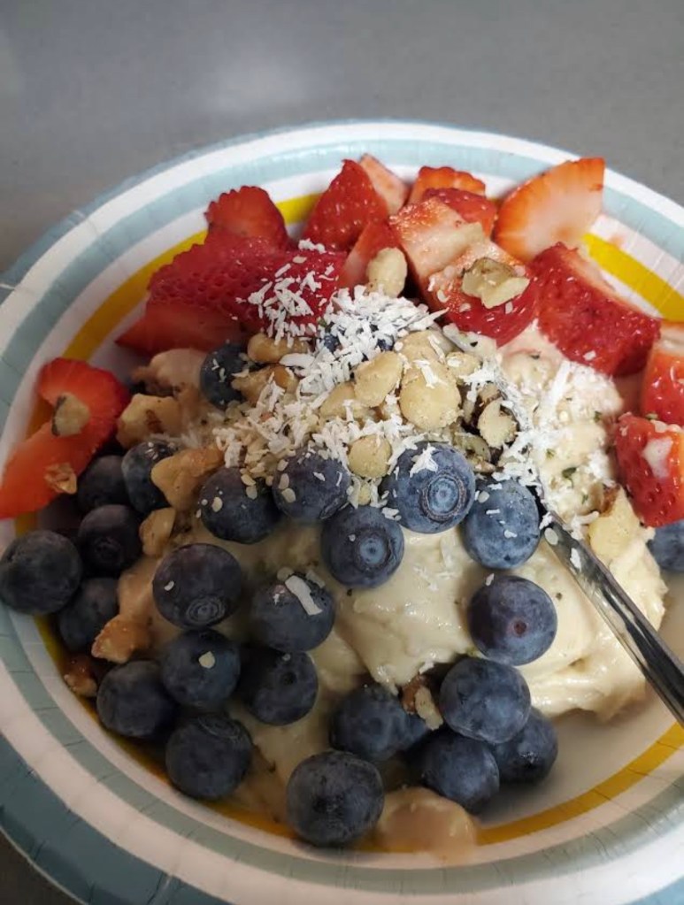 Leading up to my first half marathon race I ate a very clean diet. I am already plant-based and with three weeks prior to the race I only ate food with one or two ingredients and little to no sugar. I made protein shakes with cacao and peanut butter, ate rice bowls with beans and vegetables, Acai and Pitaya bowls, and Chickpea Pasta. Lots of berries (my favorite) as well.