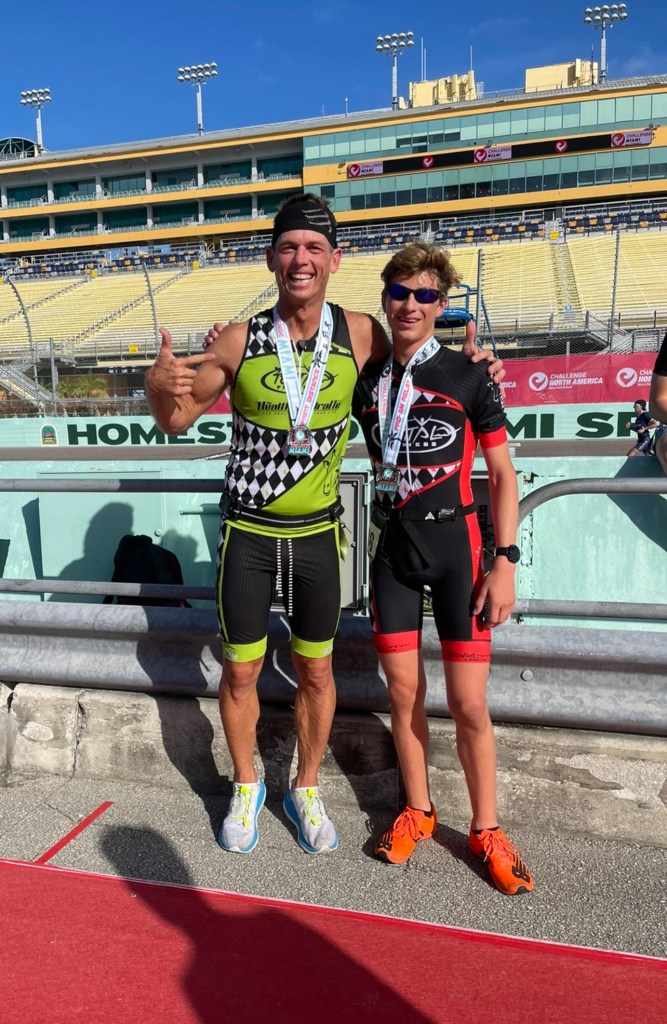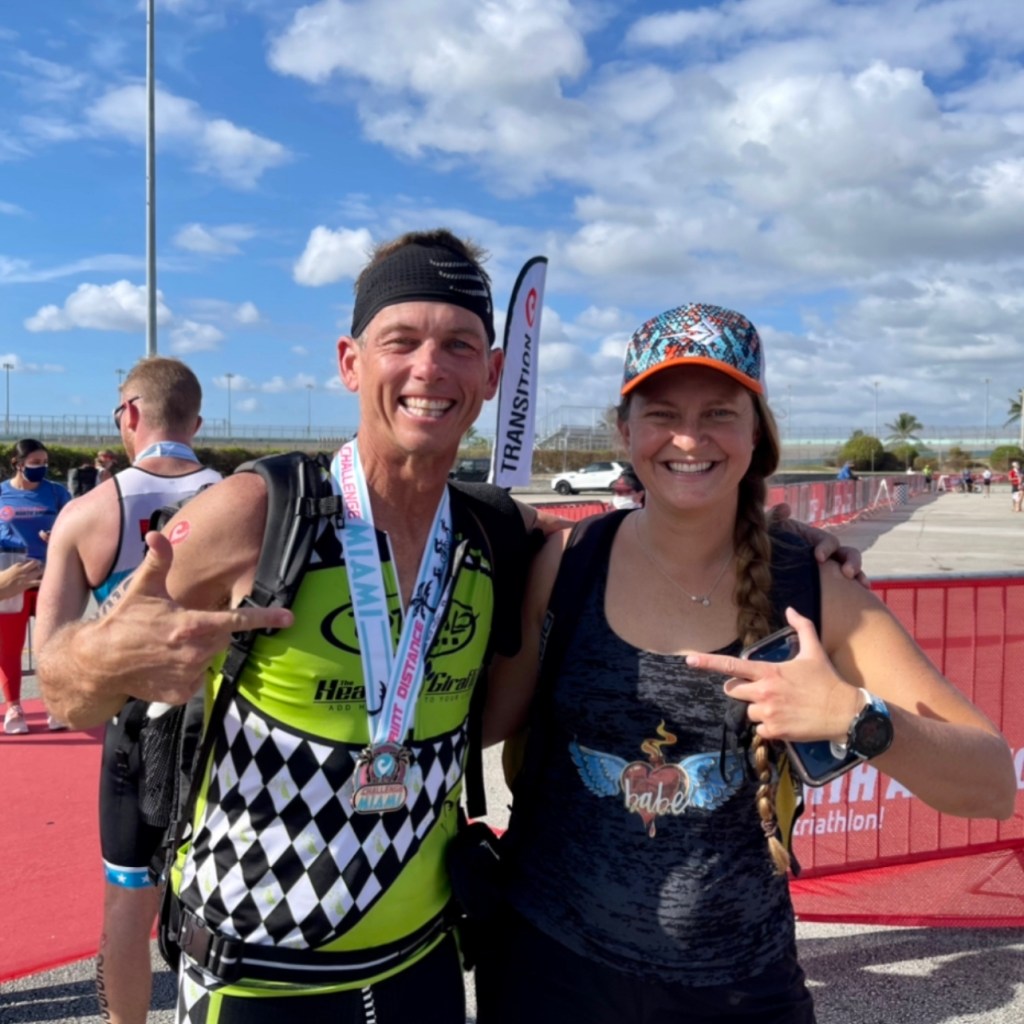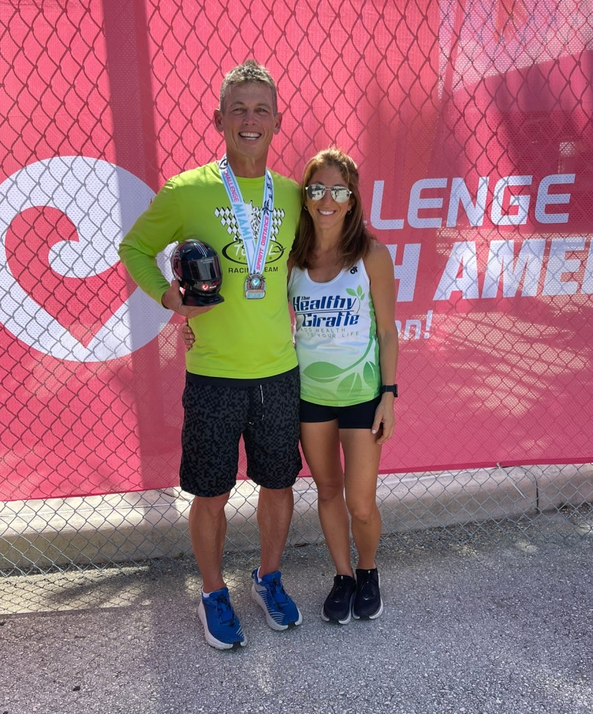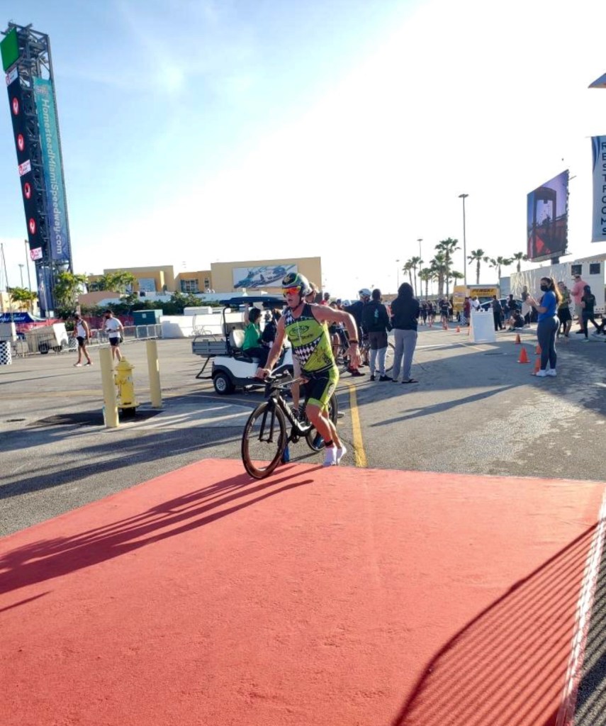 I drove to Miami Friday afternoon with Lauren and Dylan Nolan. Dylan was racing the Mixed-Relay Sprint Triathlon a few minutes after my start time Saturday morning and he was completing the run portion. When we arrived at the speedway for packet pick-up the professional ladies were finishing their race and the professional men had just started. The top professionals in the world were there…so cool! There was a different feel entering the track than most races that’s for sure. This was a similar feel to Challenge Daytona where Dylan and I teamed up for a relay in December. It really hit me at that moment I was racing the next day in a duathlon with my last solo race coming in late October.