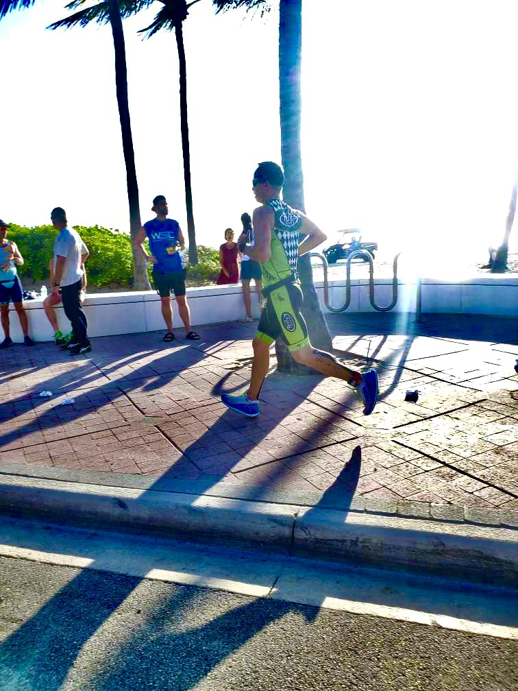 The morning came around quickly with a 3:50 AM wake up call via my iPhone. We arrived at the race location, DC Alexander Park, across from Fort Lauderdale Beach, set up my bike in transition and completed warm-ups. The race course was simple in make-up as both the run and bike courses were out-and-back loops up the A1A north before heading back south at the halfway points.