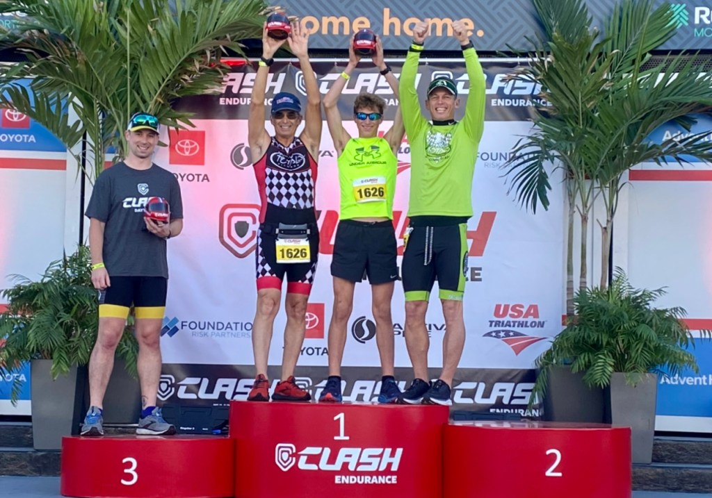 Congratulations Bob Brown on a 10th Place Overall finish in the Duathlon with his best run splits since his knee replacement over a year ago. Those run times brought huge smiles to his face along with his traditional kick-ass bike effort. Kelly Brown placed 3rd Overall Female in the Duathlon and was able to secure one of the coolest awards in multi-sport – the mini version of a NASCAR helmet. Ed Vasquez placed 16th Overall in the Duathlon as well after having an injury right before the start of the race = gamer!