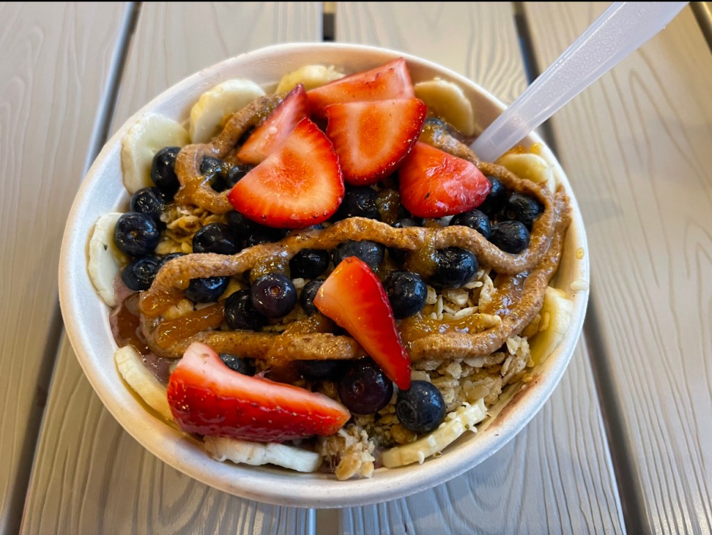 The pre-race meal Saturday night was an acai bowl from my favorite South Florida juice bar, Raw Juce. An acai bowl has been my pre-race meal for a couple years now… making me feel clean and fueled race morning. I couldn’t wait to return there and they did not disappoint. Mark had his first and loved it as well. I left a Giraffe note on the chalk board before leaving…check out the picture below.
