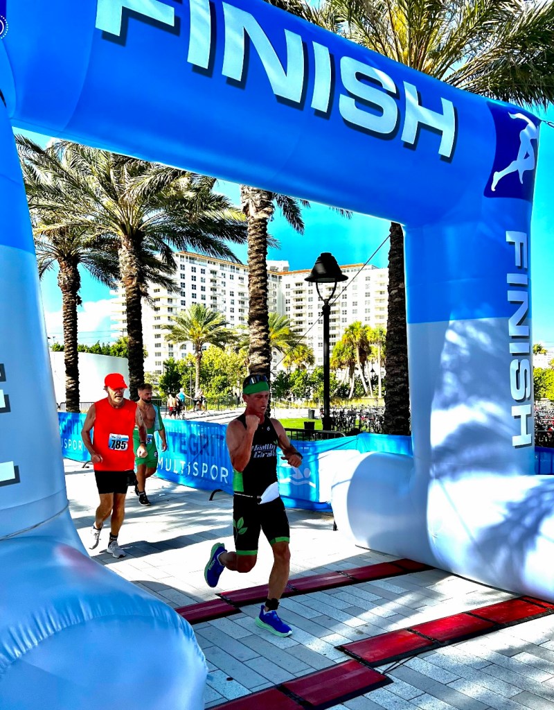 Saturday afternoon as I was trekking across Alligator Alley (I-75) between Naples and Fort Lauderdale, I received a notification on the car dash of a Wind Advisory on the coast through 7:00 AM Sunday morning. That wind advisory continued through our race. I have raced at this venue maybe five times and even on days with low wind forecasts, it poses significant challenges with cross winds through many of the high rise condominiums as you venture north and then back on the bike course. This day was on overdrive from that perspective.