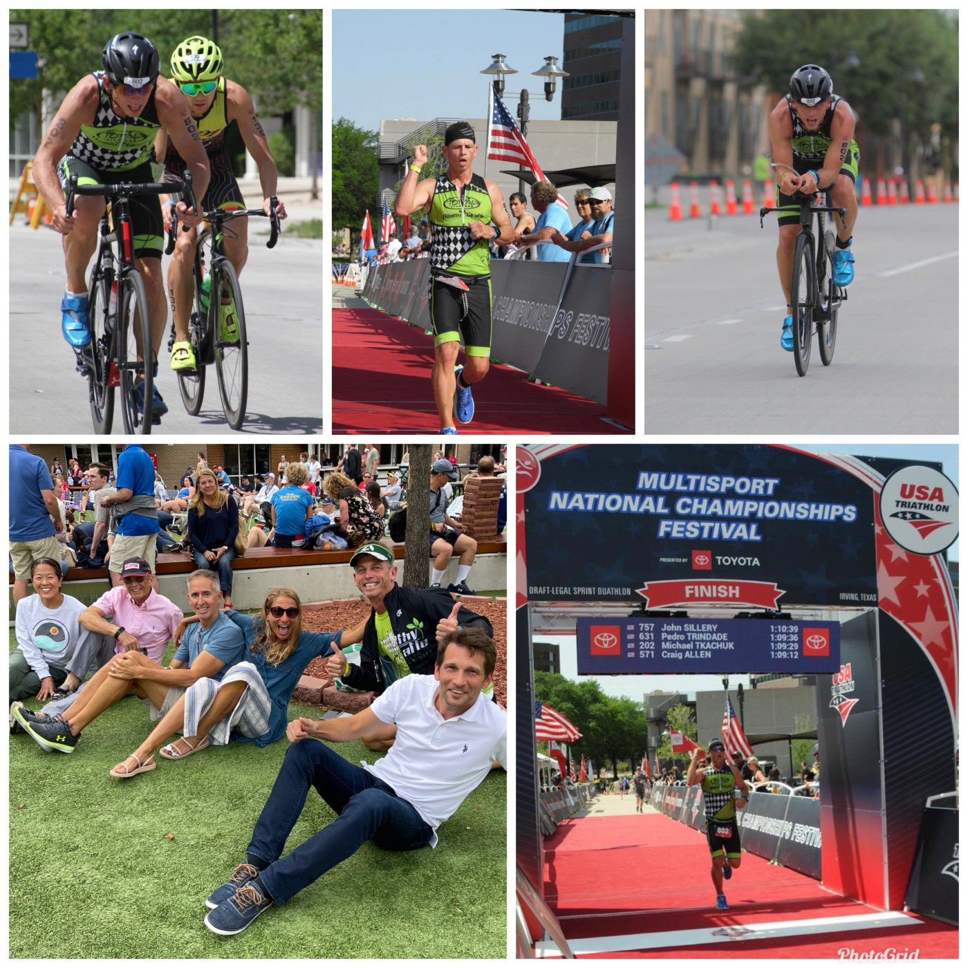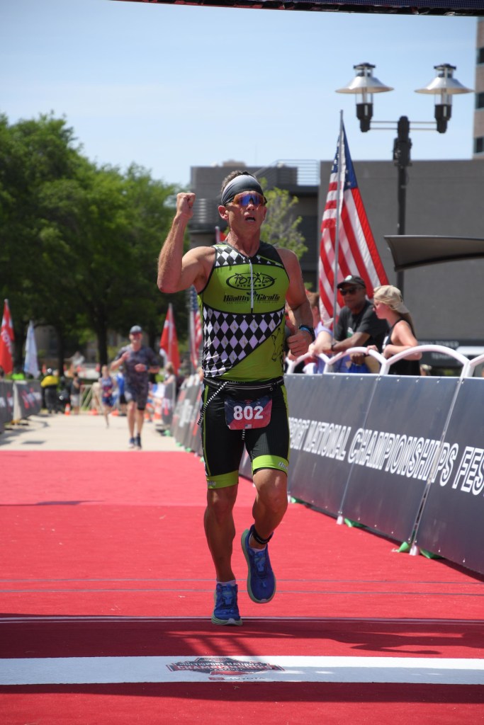 I knew when I came through the finish like the hamstring was going to lock again when I stopped and sure enough it did. Buddy, Bob Brown, yelled at one of the medical personnel to get to me and they quickly grabbed my leg and stretched out the charley-horse…I was sooooo appreciative! When I found out I only finished 17 seconds ahead of the racer behind me I felt really good about my ability to deal with the hamstring issue quickly and grit it out to the end. Even on my best day on this day I would not have caught the gentleman in 4th place so that was comforting too. I gave everything I had and fought for the 5th place finish behind absolute monsters. This marks three consecutive National Championships at the Standard distance finishing 5th…crazy.