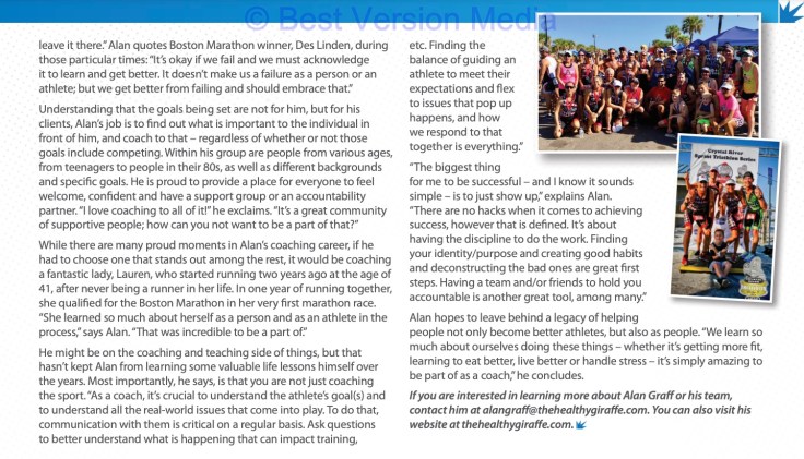 I was nominated by friend, Fred Rzymek, for a spotlight article in the March edition of Safety Harbor Living Magazine focusing on coaching.