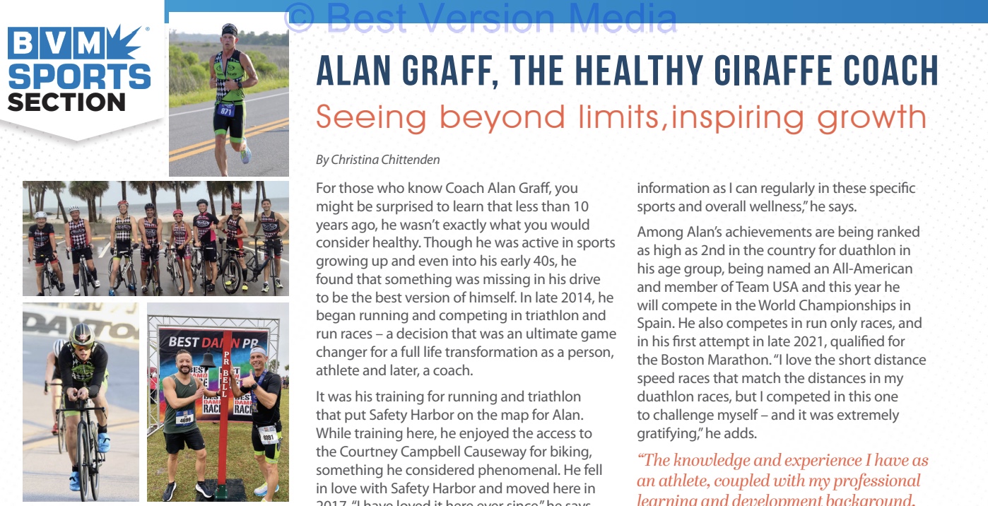 I was nominated by friend, Fred Rzymek, for a spotlight article in the March edition of Safety Harbor Living Magazine focusing on coaching.