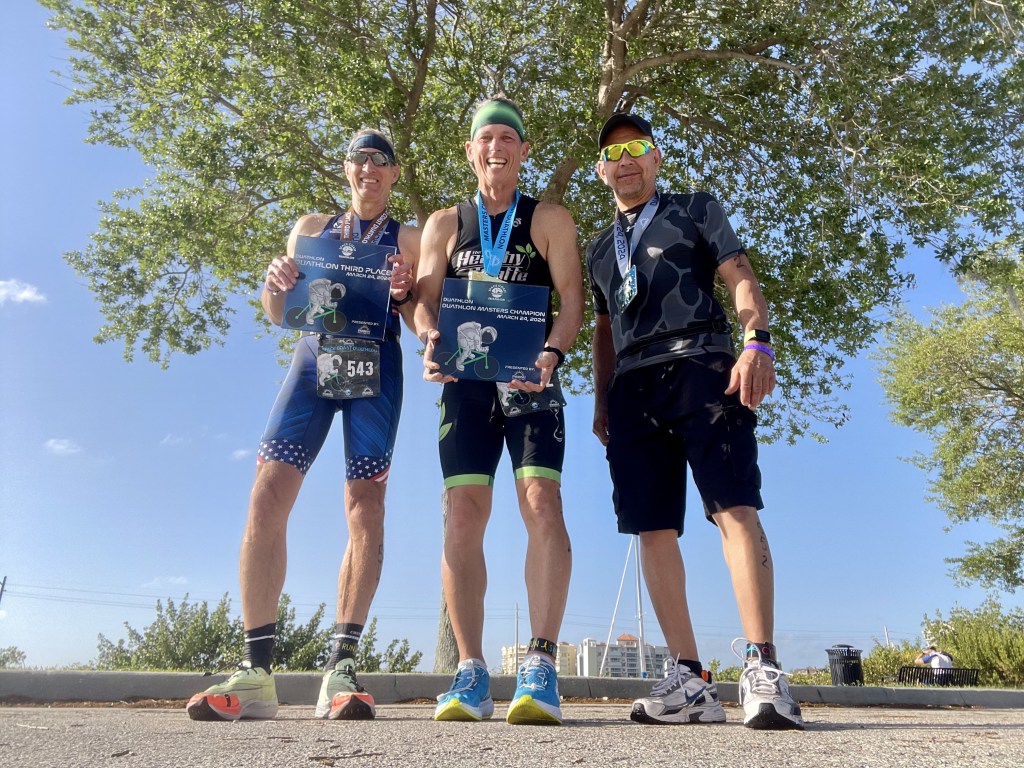 Heading out on the final 5k run, I struggled to hit my target finishing 10 seconds off the pace…not happy with that… I came through the finish line fighting placing 2nd Overall and won Masters (fastest over 40 years-old.) Hats off to Alvaro (winner) and Mark who batted for a 4th Overall finish. We ran a cooldown together after the race chatting about our experiences, met up with Ed, took some photos, and chatted more about what was next.