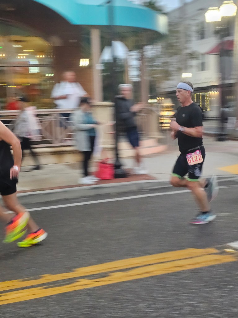 I worked and worked keeping a steady pace and cut down miles 5, 6, and the final .2 mile paces coming in 15+ seconds under my goal for the race. I felt good about my mental game and ok with the run knowing my current fitness level.