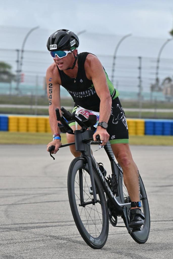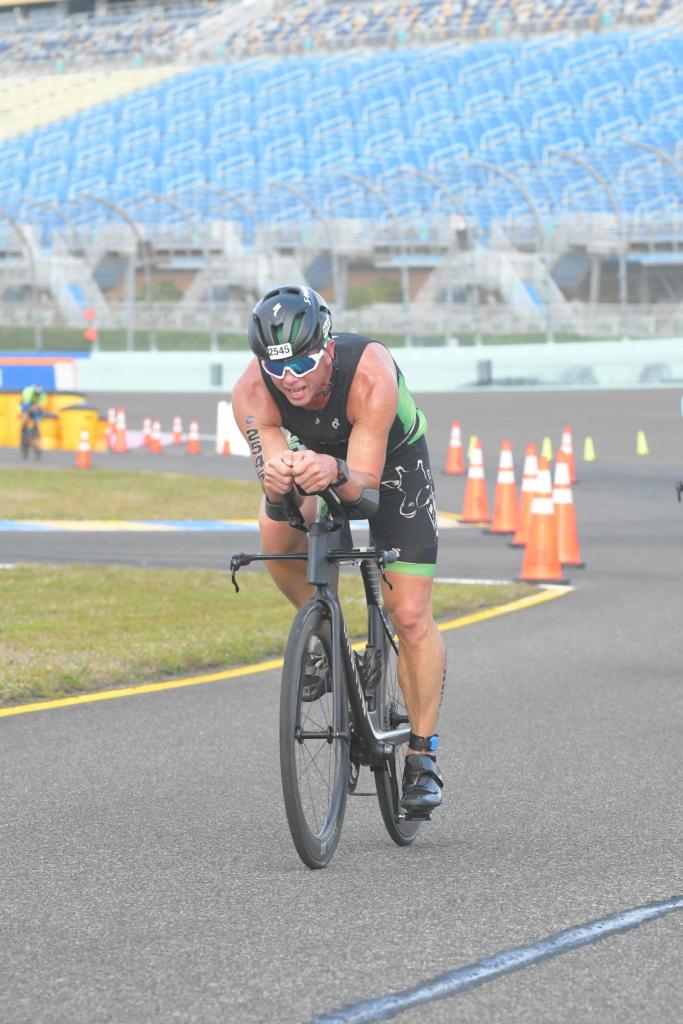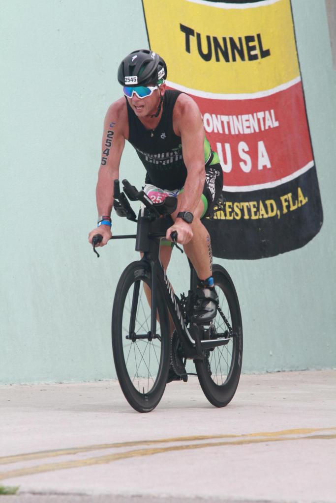 I had a sluggish transition and headed out on the bike I believe 7th overall as I lost a spot in transition to one of my Team USA Age Group teammates, Brad Galbraith. We battled on the bike for 56 miles at Daytona in December, so I knew this was going to be a true test to see where my bike fitness was as he is top notch. I caught him early and he overtook me right back and we caught another one of our competitors shortly thereafter. I then led the three of us through mile 15 as we simply were hammering what power we had. Brad took over the lead then and I came in close behind into Transition #2.