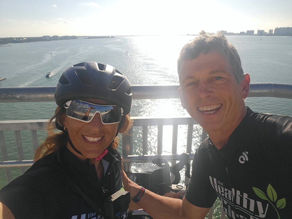 When we climbed to the top of the Clearwater Memorial Causeway entering Clearwater Beach we got off our bikes and took a picture with the biggest smiles. We then cycled a few more miles to the Sandpearl Resort. We took a quick picture and I took an Uber home to get my car, drive back, and enjoy a celebration dinner at the Taste Island Grill on the beach via the Sandpearl Resort. What a beautiful setting. We shared our memories of the two days and felt so proud of what we did. It was just the two of us and the road/trail.