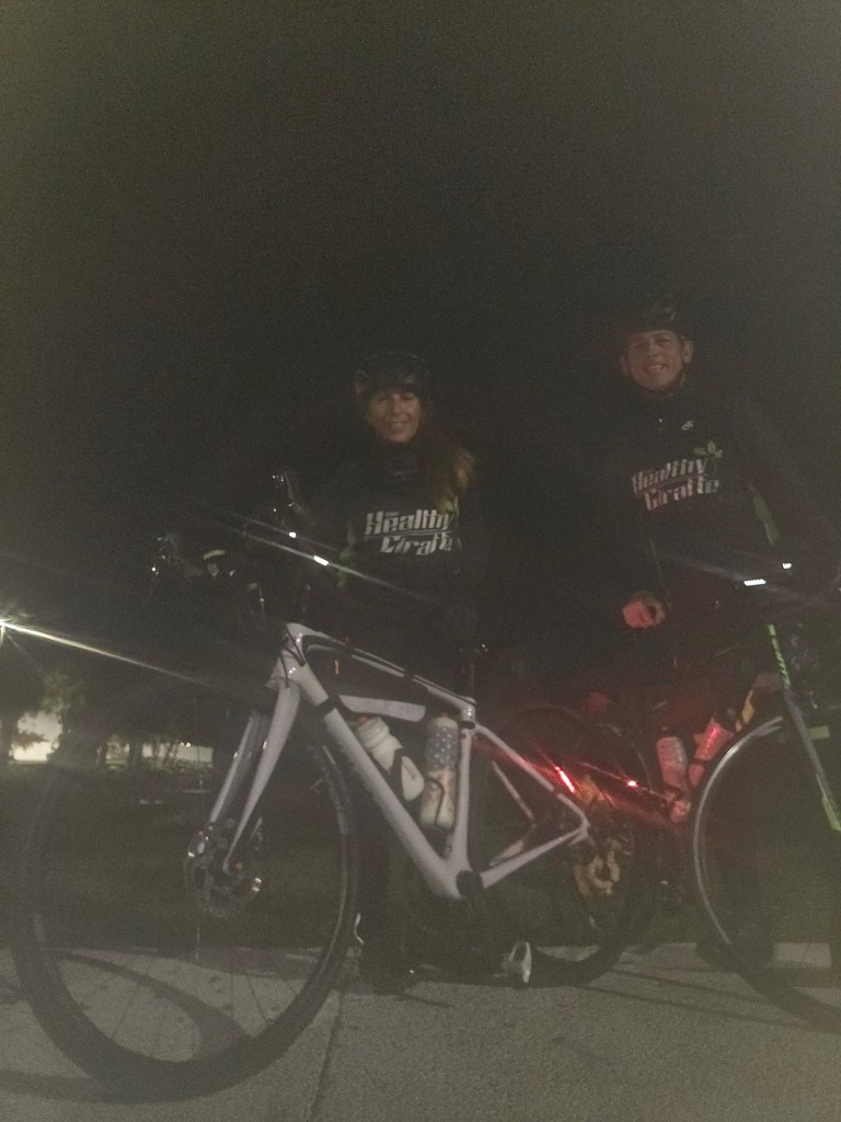 We powered through and rolled into the hotel at 7:30 PM with just over 130 miles in the books. I was hangry by this point. Thankfully there was a Beef o’ Brady’s in the parking lot adjacent to the hotel that had a plant-based option…wow! Lauren ordered the food and I worked on getting our clothes dry and recharging our lights, batteries, and phones – #team. We ate and collapsed asleep in exhaustion. Lauren was really sore in her quads and neck/shoulders and I was equally sore in my neck/shoulders along with a lower back annoying soreness but manageable.